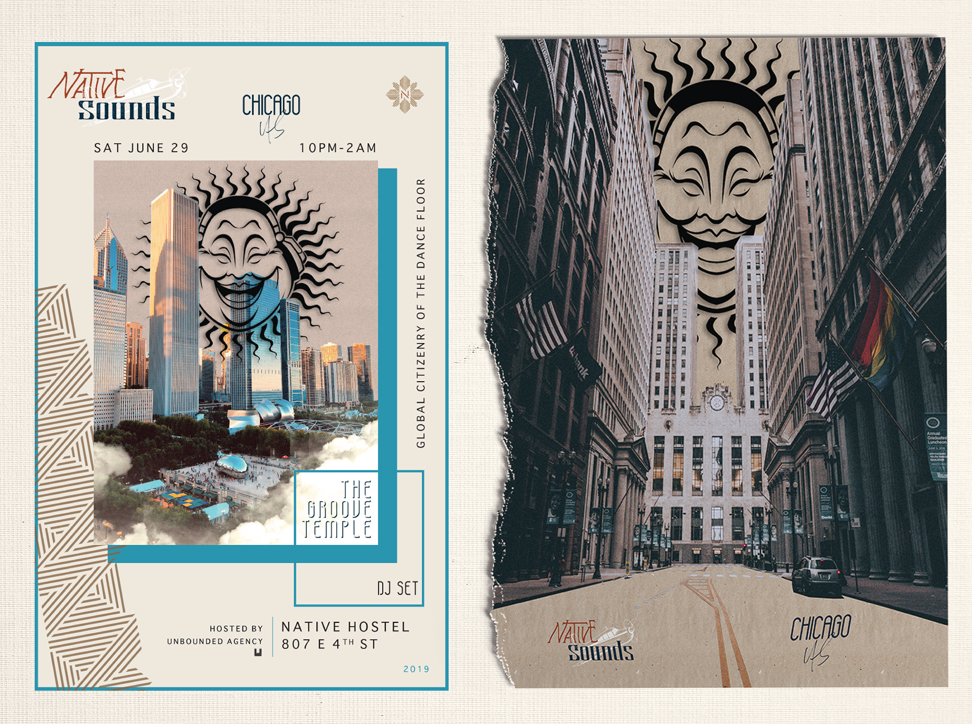 A curated summer DJ series at Native Hostel hosted by Unbounded Agency. I created the Native Sounds logo, posters, social media assets, and co-created the zine for this series.